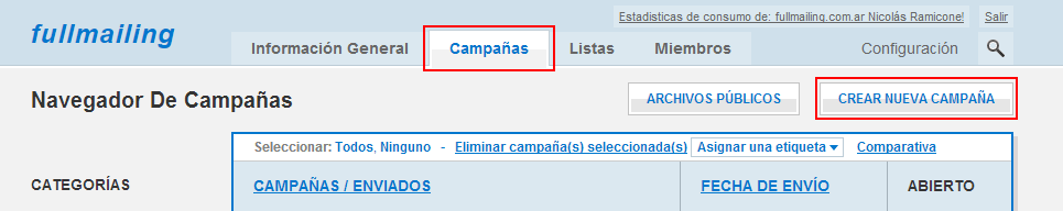 A continuación se muestra el ejemplo de cómo crear una nueva campaña utilizando la opción